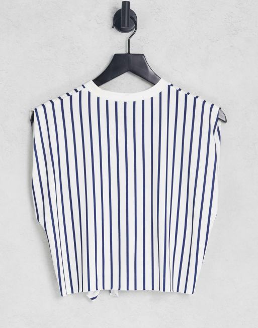 Asos Design Kastiges Gestreiftes Oversize T Shirt In Ecru Und Marineblau Mit Frontknoten Asos